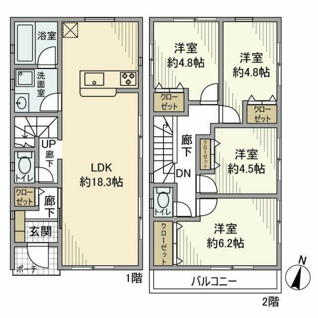 4LDK(LDK18.3、洋4.5、洋4.8、洋4.8、洋6.2) |